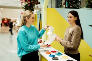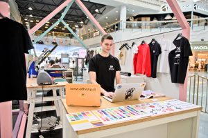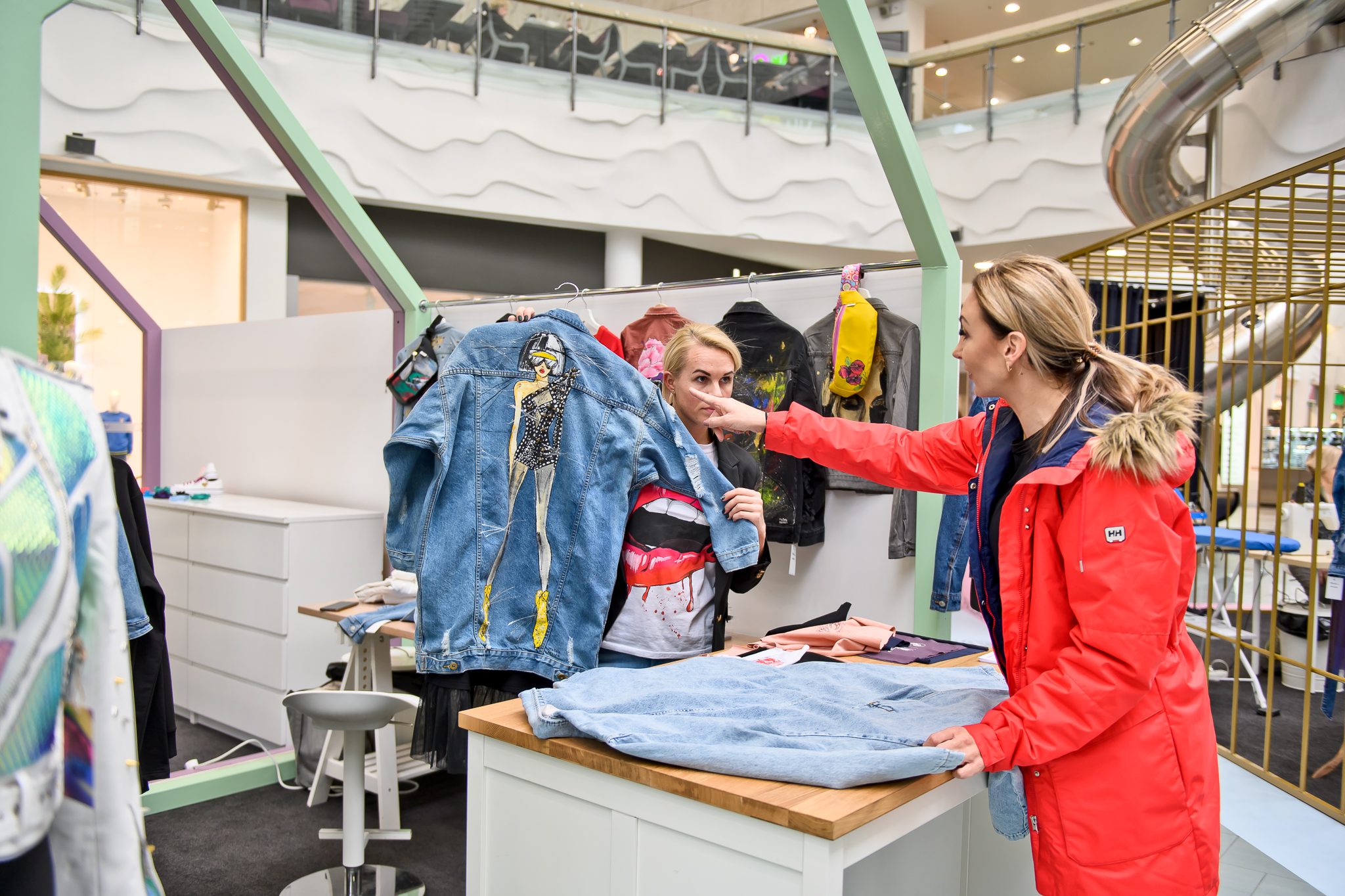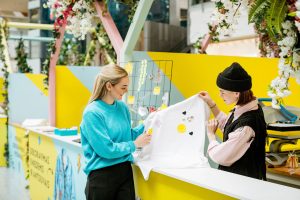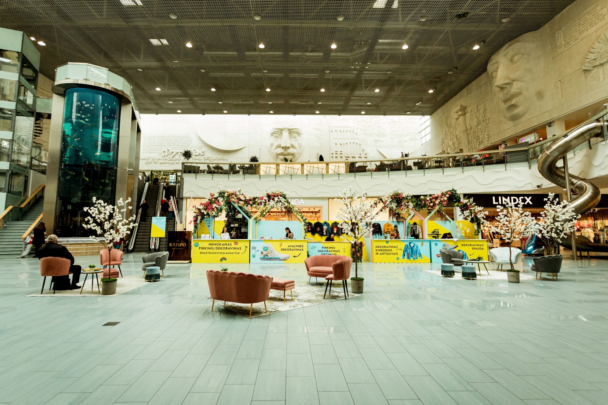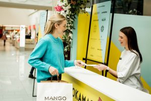 Prekybos ir laisvalaikio centro MEGA lankytojai apsipirkę naujų pavasario kolekcijų pirkinių buvo kviečiami nemokamai pasidekoruoti savo pirkinius.